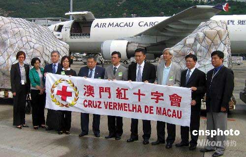 澳门社会各界筹集的第二批共二千九百余箱救灾物资,六月二日十三时许由澳门航空公司包机从澳门运往四川。中新社发 毕永光 摄