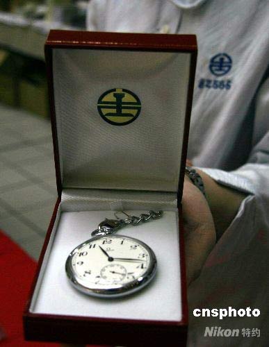 台北火车站大厅现场展售单价三万三千元新台币的欧米茄台铁纪念怀表。