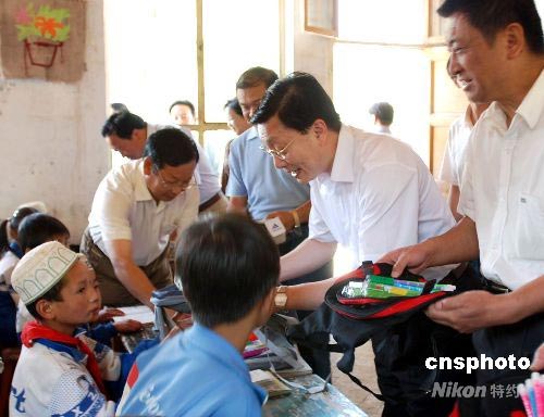 6月11日至12日,国务院侨办副主任马儒沛一行赴国侨办定点帮扶点积石山县,视察了定点帮扶项目的进展情况,并看望了积石山县的部分贫困农户和小学生。13日,马儒沛向甘肃省政府转交海外侨胞的捐款1000万元人民币。中新社发 牛建业 摄