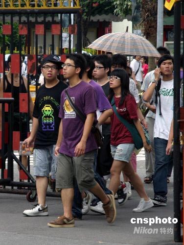 一年一度的台湾“高考”——指考,即大学入学指定科目考试七月一日上午开考,全台湾今年共有九万三千六百八十一人报名参加指考。第一天有四万多自然组考生先上阵,考物理、化学、生物。图为台北建中考场门口,考生们手持文具入场。中新社发 徐长安 摄