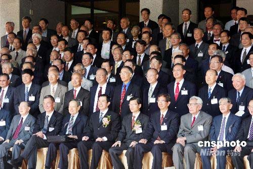 7月1日,台湾“中央研究院”在台北举行第二十八次院士会议,著名科学家杨振宁、丁肇中、李远哲、何大一等出席。于1928年在南京成立的“中研院”,今年适逢80周年院庆,陆续举办科学论坛等系列系列。目前,“中研院”有逾200名海内外院士,是台湾学术、教育、科技、文化的重镇。图为台湾地区领导人马英九与“中研院”院士在院士会议开幕式后合影。中新社发 黄少华 摄
