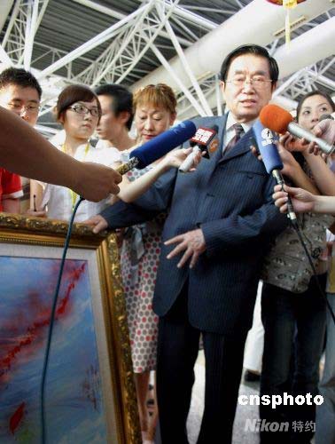 “海峡四十年,历史一瞬间,相思如雨丝,落入长江去”,这是台湾著名诗人范光陵一九八八年访问大陆时所作,4日,南京两岸周末包机首航前,范光陵携一幅自创诗意油画登机。一枚两岸周末包机的南京首航机票,饱含着他所有对家的思念:“我要回家看看家人”。早八点,从南京出发的首班两岸周末包机已经起飞,一百四十二名游客三小时后将抵达台北松山机场。这一百四十二名旅客中半数为台湾同胞,不少台商表示“截弯取直”是两岸民众的共同愿望,希望尽早实现两岸“一日生活圈”目标。中新社发 朱晓颖 摄