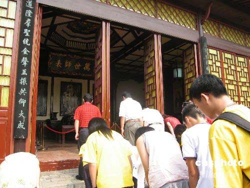 7月17日,千年学府岳麓书院内文庙前,来自海峡两岸的四十多位家长、孩子共同向至贤先师孔子像行鞠躬礼。据悉,这些家庭都是“亲子读经班”的成员,为学习传统中华文化,家长利用业余时间带着孩子一起诵读古文经典,促进沟通。中新社发 刘双双 摄