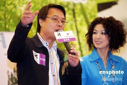 七月二十七日,香港名导演李力持与资深艺人米雪向观众介绍成都在地震后全面启动旅游市场的信息。当日,由四川成都市对外文化交流协会、香港中旅、香港旅发局等单位在东港城联合举办 “第二届成都(香港)熊猫节”。中新社发 洪少葵 摄