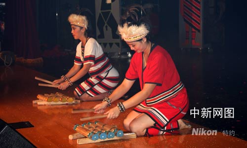 图:台北县剧场表演泰雅族乐器木琴演奏场景