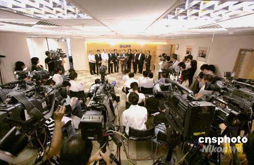 二〇〇八年香港立法会选举已圆满结束,民建联在地区直选取得九席,功能界别四席,合共取得十三席,图为民建联当选人九月八日上午与媒体见面。中新社发 张勤 摄
