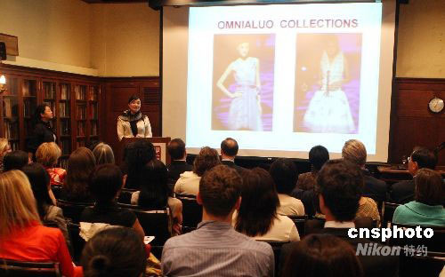 9月9日(当地时间),中国著名女装设计师罗峥,在美国纽约举行《中国时装与国际市场的发展》专题讲座吸引众多美国业内人士及华人前来参加交流。罗峥女装秀“人面桃花”于9月12日在纽约时装周展示,演绎欧柏兰奴女装东方新浪漫主义风格。中新社发 钱兴强 摄