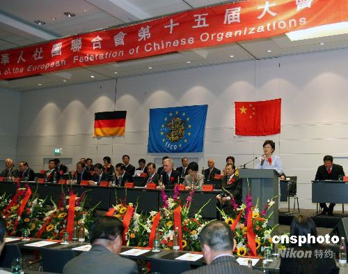 欧洲华侨华人社团联合会第十五届大会9月10日在德国柏林开幕,欧洲25个国家的华侨华人代表和中国有关部门负责人等500余人出席开幕式。图为中国国务院侨办主任李海峰在开幕式上致辞。中新社发 欧时 摄
