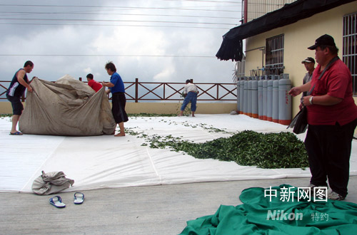 图:受台风影响 阿里山茶农忙晾茶