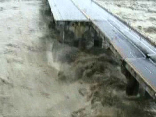 组图:台中县后丰大桥垮塌 三车被洪水冲走