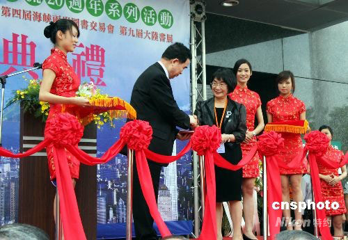 9月20日,纪念海峡两岸出版交流二十周年系列活动在台北开幕。图为参加活动的大陆参访团团长、纪念海峡两岸出版交流二十周年系列活动组委会名誉主任柳斌杰,代表大陆出版界向台湾高校图书馆的代表捐赠图书。中新社发 陈立宇 摄
