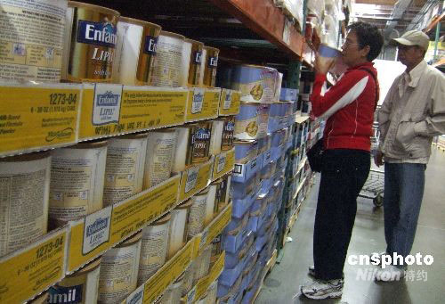 9月23日,几位华人顾客在洛杉矶附近的一个大型超市选购美国产婴儿奶粉。三鹿婴儿奶粉事件在洛杉矶华人社区产生极大反响,应国内亲友之托,许多洛杉矶华人华侨纷纷购买美国产婴儿奶粉邮寄或捎带回国。中新社发 张炜 摄