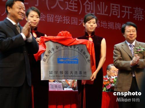 9月24日,由国家科技部、教育部、人力资源和社会保障部、国务院侨办、中国科学院、欧美同学会·中国留学人员联谊会和辽宁省政府联合主办的2008中国海外学子辽宁(大连)创业周在大连开幕,开幕式上还举行了欧美同学会·中国留学人员联谊会留学报国大连基地揭牌仪式。中新社发 宋太盛 摄