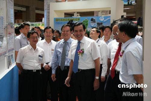 9月25日上午,2008台北国际发明暨技术交易展开幕,台湾地区领导人马英九出席典礼。本次交易展设立900多个展位,台湾科研机构、高等院校、企业及来自19个国家的外商前来参展,展示专利和创新发明产品超过2000项,范围涉及电子、生物、能源、食品等12项产品类别,该交易展将于28日结束。中新社发 杨旭 摄