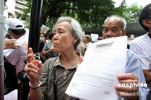十月八日上午,逾百名受雷曼迷你债券影响的香港市民,趁新一届立法会复会到场抗议,要求立法会成立专责委员会撤查事件。有苦主认为,银行回购方案未能让他们悉数取回本金。当日,财政司司长曾俊华重申,政府提出由分销银行回购雷曼迷你债券方案是希望投资者尽快取回部分资金,强调政府不会“包底”的。中新社发 洪少葵 摄