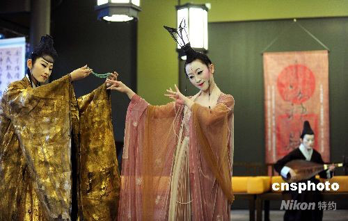 十月九日,台湾汉唐乐府演员在故宫排演“洛神赋”。十月十八日,继去年在故宫上演《韩熙载夜宴图》,台湾汉唐乐府将以更加瑰丽的风姿在故宫皇极殿前隆重献演中、法、德跨国合作的南音乐舞大戏——《洛神赋》。