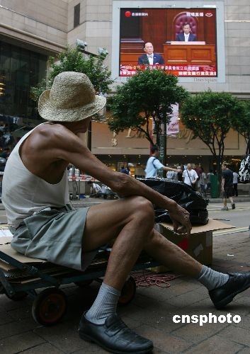 十月十五日,香港特别行政区行政长官曾荫权在立法会发表二零零八至零九年施政报告,众多香港市民在时代广场通过大屏幕观看直播。中新社发 武仲林 摄