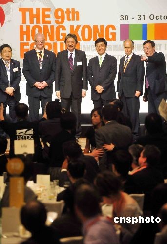 十月三十日,香港财政司司长曾俊华(左三)出席第九届香港论坛的欢迎午宴。香港论坛由贸发局主办,旨在协助香港公司拓展关系,促成合作。中新社发 谭达明 摄