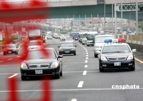 11月3日8时许,海基会出动车队前往机场,迎接海协会会长陈云林一行访台。图为警方对前往机场的高速路管制交通。中新社发 黄少华 摄
