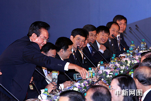 图:会谈间隙陈云林江丙坤互相倒水显温情