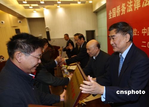 十一月十八日,全国侨务法律法规知识竞赛颁奖大会在北京举行,95人分获一、二、三等奖,40个单位获组织奖。由中国侨联等单位主办的全国侨务法律法规知识竞赛旨在贯彻落实中央“五五”普法规划,加强宪法学习宣传,普及侨务法律知识。中新社发 史利 摄