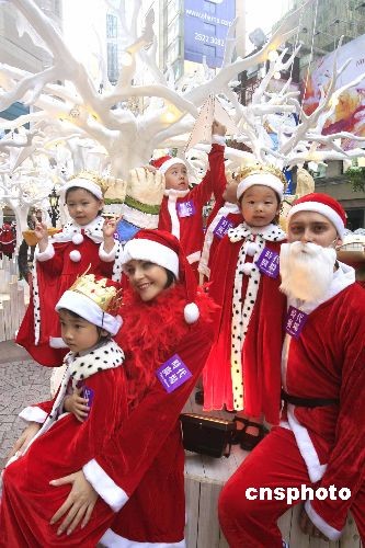 十一月十八日,香港时代广场Carrie Chau的圣诞花园开幕,二十位大大小小、不同年龄的圣诞老人来到露天广场为圣诞花园揭开序幕。中新社发 张勤 摄