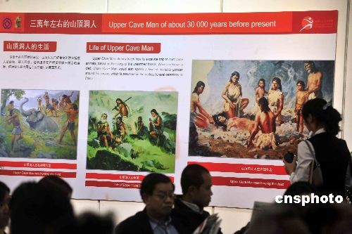 十一月十九日,“北京人走进香江—周口店遗址图片展”在香港大会堂开展,展览为期八天。周口店遗址距北京西南约五十公里,自上世纪二十年代发掘至今,共发现二十七个具有学术价值的地点,出土大量的古人类化石、石器、动物化石和丰富的用火遗迹。中新社发 谭达明 摄