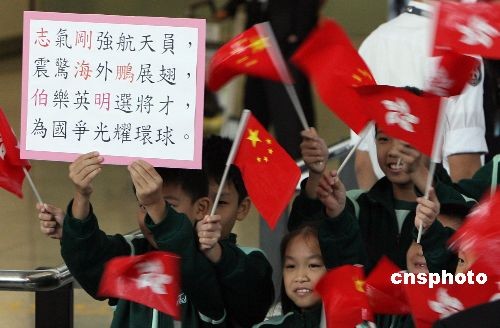 十二月五日,“神舟七号”载人航天飞行代表团抵达香港国际机场,展开为期四天的访港行程。四十多人的代表团包括团长张建启、航天员翟志刚、刘伯明和景海鹏,以及负责这次载人航天工程的各主要系统指挥或设计师。中新社发 武仲林 摄