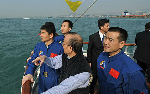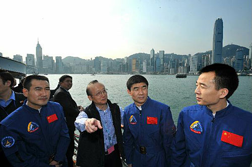 中新网12月6日电 据香港特区政府网站消息,“神舟七号”载人航天飞行代表团今日(十二月六日)乘船参观维多利亚港两岸,展开在香港的第二日行程。