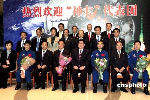 十二月六日,“神舟七号”载人航天飞行代表团拜会中央人民政府驻香港联络办公室(中联办)。中新社发 张勤 摄