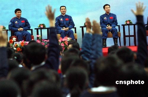 图:澳门学子踊跃向“神舟七号”航天员发问