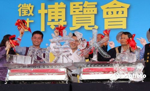 图:台北市长郝龙斌锤击“冰河”抗失业潮
