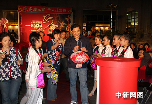 元宵节将至,2月7日晚,台北县三峡镇客家文化园区举行客家博览会“千人提灯趣”元宵点灯活动。