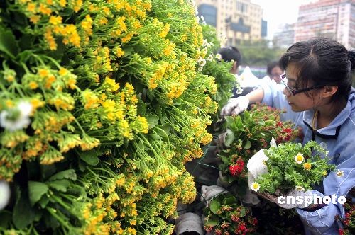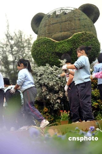 二月二十八日,来自二十间学校的五百多名学生,在香港维园协助镶嵌大型花坛“森林运动会”花坛。据悉,今届花卉展览展出逾二百个来自香港、内地及世界各地参展机构的花卉,以及造型独特的园林景点及花艺摆设,色彩绚丽,形态各异。中新社发 谭达明 摄
