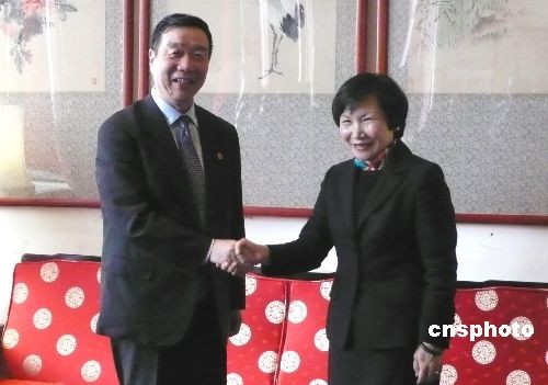 北京故宫博物院院长郑欣淼(左)三月一日率领十人访问团抵达台北,展开对台北故宫为期四天的回访。图为郑欣淼与台北故宫博物院院长周功鑫(右)在记者会上。两人都表示:两岸故宫合作能撷长补短、互惠互补,一加一的效果将远大于二。中新社发 路梅 摄