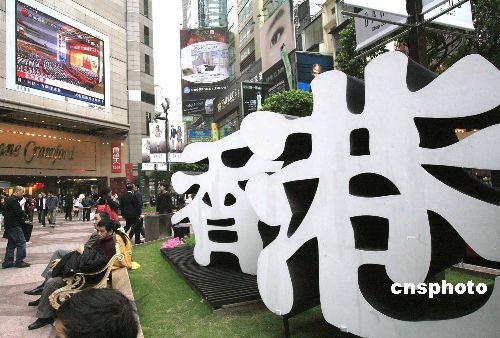 三月三日,全国政协十一届二次会议在北京人民大会堂开幕,香港市民在时代广场通过大屏幕收看相关报道。中新社发 张勤 摄