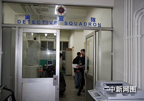 3月6日下午,台北市南京东路三段国泰世华银行复兴分行前发生银行抢劫案,一名身穿深色雨衣,戴深色全罩式安全帽的歹徒在连开6枪,击伤1名运钞车保全人员后,劫走两袋共新台币278万元的现钞逃逸。目前警方正全力侦查中,图为事件辖区内的台北市警察局松山分局侦查队办公室。 中新社记者 陈立宇 摄