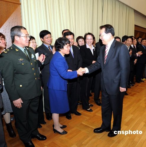 中共中央政治局常委李长春29日下午抵达日本开始为期一周的正式友好访问。当晚,他前往中国驻日大使馆接见了使馆工作人员和中资机构、驻日媒体、华人华侨及留学生代表。中新社发 冯学敏 摄