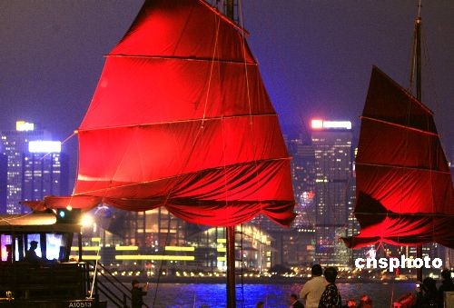 三月,香港著名的维多利亚港夜晚璀璨斑斓,吸引着世界各地游客驻足欣赏。中新社发 张勤 摄