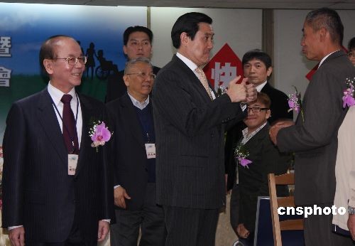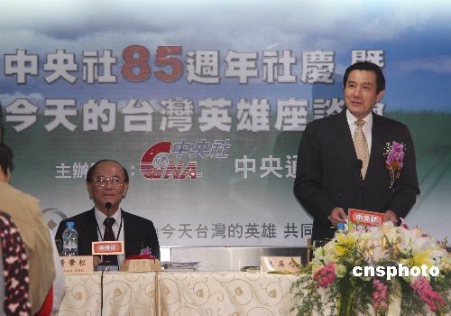 4月1日,台湾中央社举行85周年社庆庆祝活动,邀请该社系列报道过的15位台湾平民英雄到社内座谈,台湾领导人马英九出席座谈会。中新社发 耿军 摄
