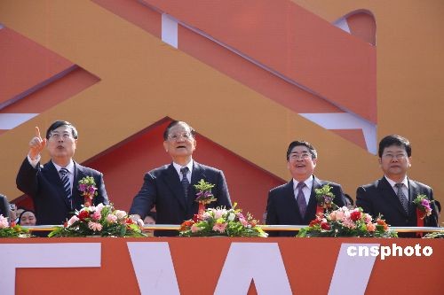 四月五日,中国国民党荣誉主席连战应邀出席在西安开幕的第十三届中国东西部合作与投资贸易洽谈会。图为连战在开幕式现场。中新社发 张相印 摄