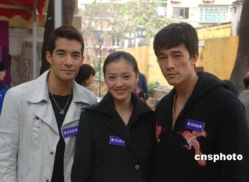 四月七日开镜的首部澳门本土电影《奥戈的故事》,由澳门基金会及内地、葡萄牙投资方联合出资约一千万澳门元拍摄,澳门演员古天祥(左)、香港演员吴嘉龙(右)、内地演员王晓(中)担任主演。中新社发 毕永光 摄