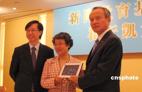 二十三日中午,香港新闻教育基金邀请中国驻日本大使崔天凯与香港媒体高层共进午餐,崔天凯发表了简短演讲并回答记者提问。据了解,崔天凯大使是应香港特区政府邀请前来香港访问的。图为香港新闻教育基金主席刘志权(左)向崔天凯大使夫妇赠送纪念品。中新社发 陈国华 摄