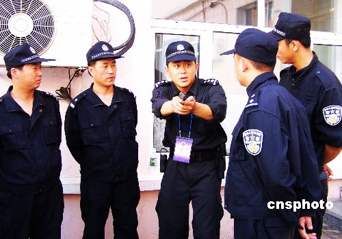 8月10日,黑龙江公安厅教官对黑河公安局民警进行警务实战技能指导。当日,黑龙江公安厅苦练基本功推进组一行8人来到黑河,开展送教上门活动。中新社发 邱齐龙 摄