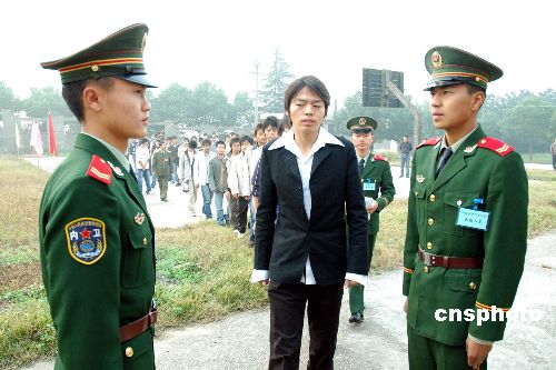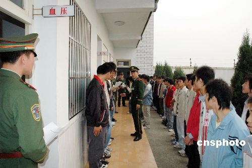 11月2日,江苏省仪征市兵员征集站体检开检。和往年不同,2006年兵员征集站专门调来了武警守卫和引导。中新社发 周晓明 摄