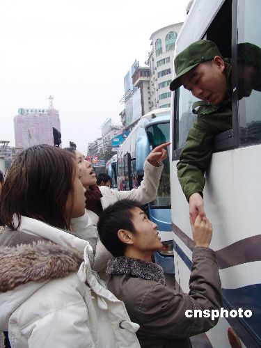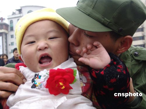 12月10日,重庆永川市在渝西广场举行新兵欢送仪式。市妇联向新兵赠送了爱心鞋垫,文艺工作者演唱了一首首感动人心的歌曲,令来自该市中山路街道办事处、仙龙镇等地的第二批100名新兵热泪盈眶,他们在亲人的嘱咐声中依依不舍地离别故土,踏上了赴内蒙古的从军之路。中新社发 陈仕川 摄