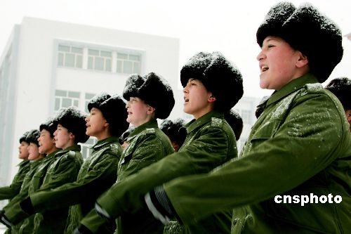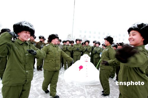 12月18日,新疆军区某通信总站的新战士在大雪中进行训练和娱乐活动。中新社发 阿丑 摄