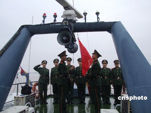 1月1日,浙江温州边防支队公边33145艇官兵举行升国旗仪式,喜迎新年第一天的来临。升旗仪式上,伴随着雄壮的国歌声的响起,庄严的五星红旗冉冉升起,整齐列队的边防官兵怀着崇敬之情向国旗行注目礼,表达对党、对祖国、对人民永远忠诚的坚定决心。中新社发 陈孝和 摄