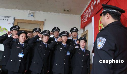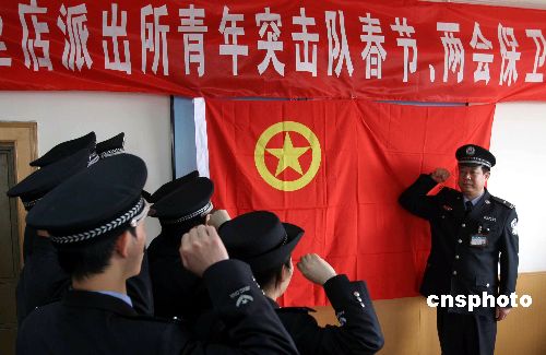 为确保辖区内“两会”驻地的安全,北京朝阳警方采取层层发动方式并成立青年突击队,全力确保“两会”顺利召开。中新社发 李宝华 摄