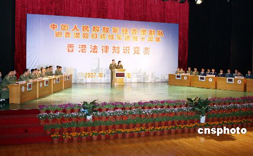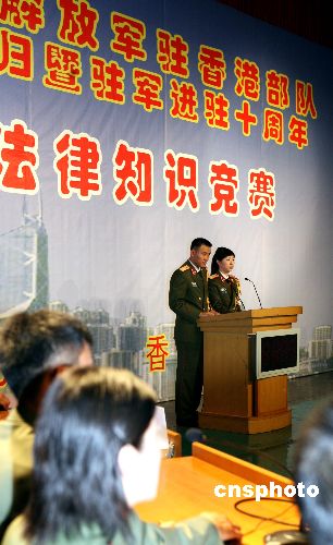 3月7日﹐解放军驻港部队在昂船洲军营举办香港法律知识竞赛﹐检验官兵学习﹑掌握香港法律知识的成效﹐并以此迎接香港回归十周年和驻军进驻香港十周年。中新社发 王丽南 摄